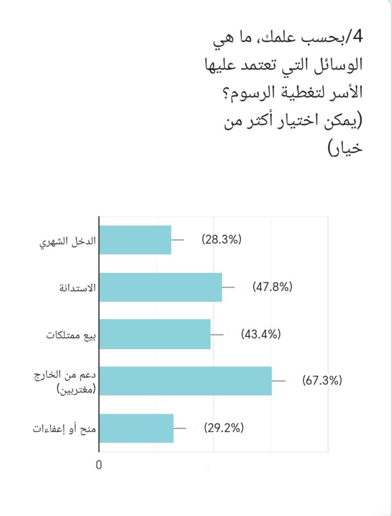 وتبرز هذه المؤشرات اعتماد الأسر على وسائل تمويل استثنائية لتغطية تكاليف التعليم.